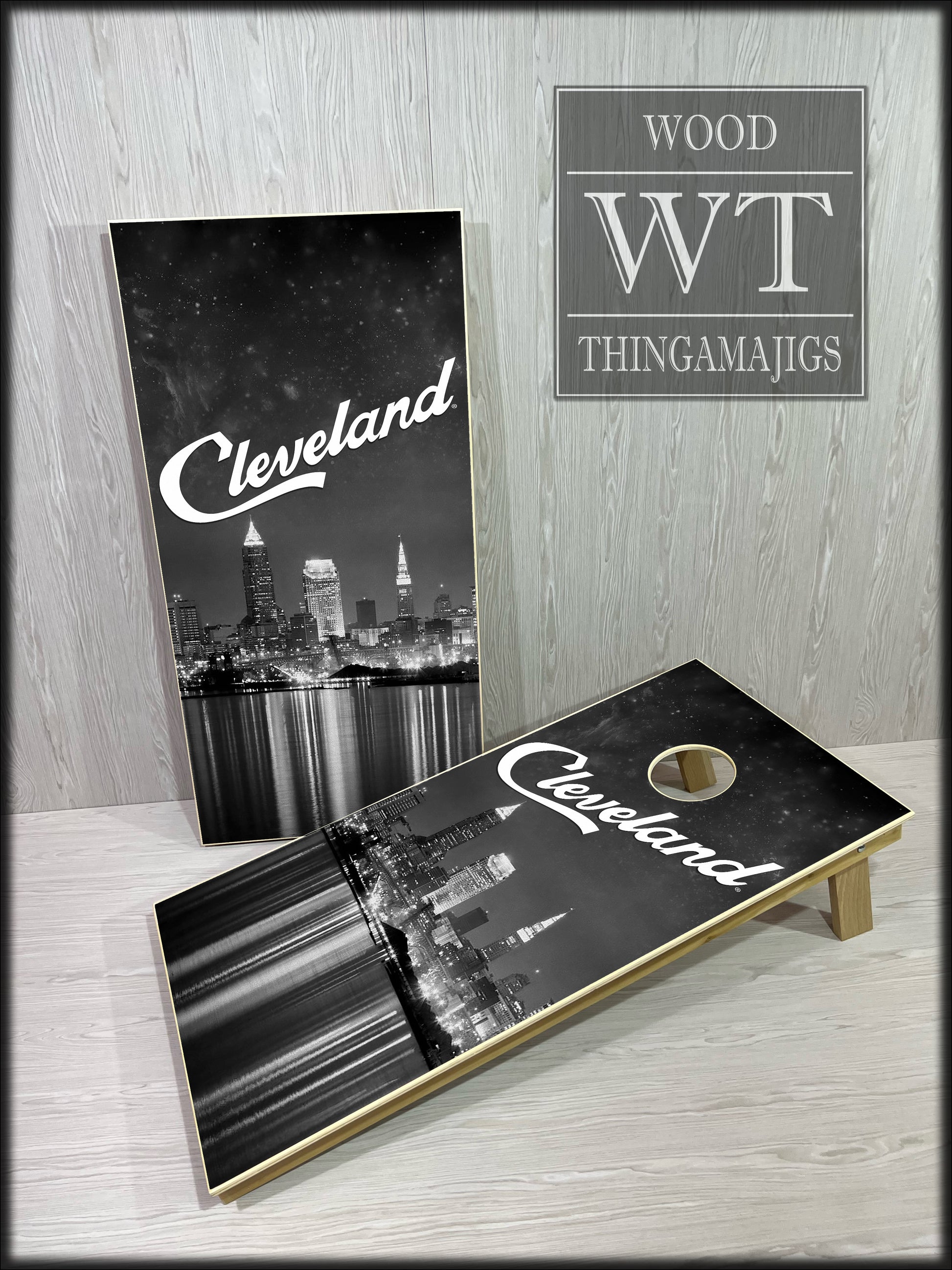 Solid red oak frames and legs with cabinet grade tops (Baltic Birch tops available). No weak plywood frames here! All frames include four cross braces to eliminate bounce. We print our skins in-house so the sky is the limit on designs. All of our cornhole sets meet or exceed ACL regulations! All corners are rounded to prevent bag tears. Other companies claim to have boards strong enough to park a truck on - we proved it!