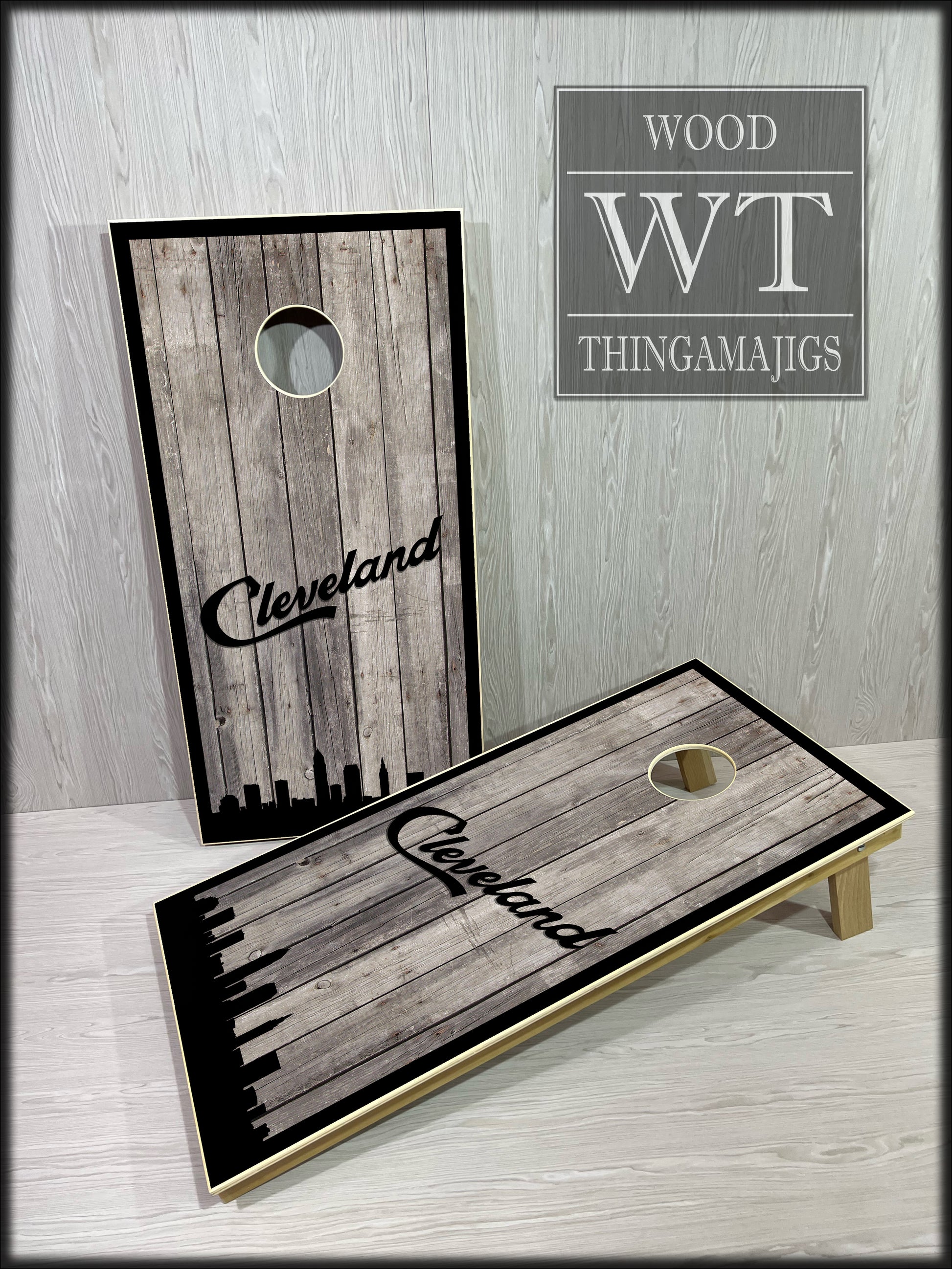 Solid red oak frames and legs with cabinet grade tops (Baltic Birch tops available). No weak plywood frames here! All frames include four cross braces to eliminate bounce. We print our skins in-house so the sky is the limit on designs. All of our cornhole sets meet or exceed ACL regulations! All corners are rounded to prevent bag tears. Other companies claim to have boards strong enough to park a truck on - we proved it!